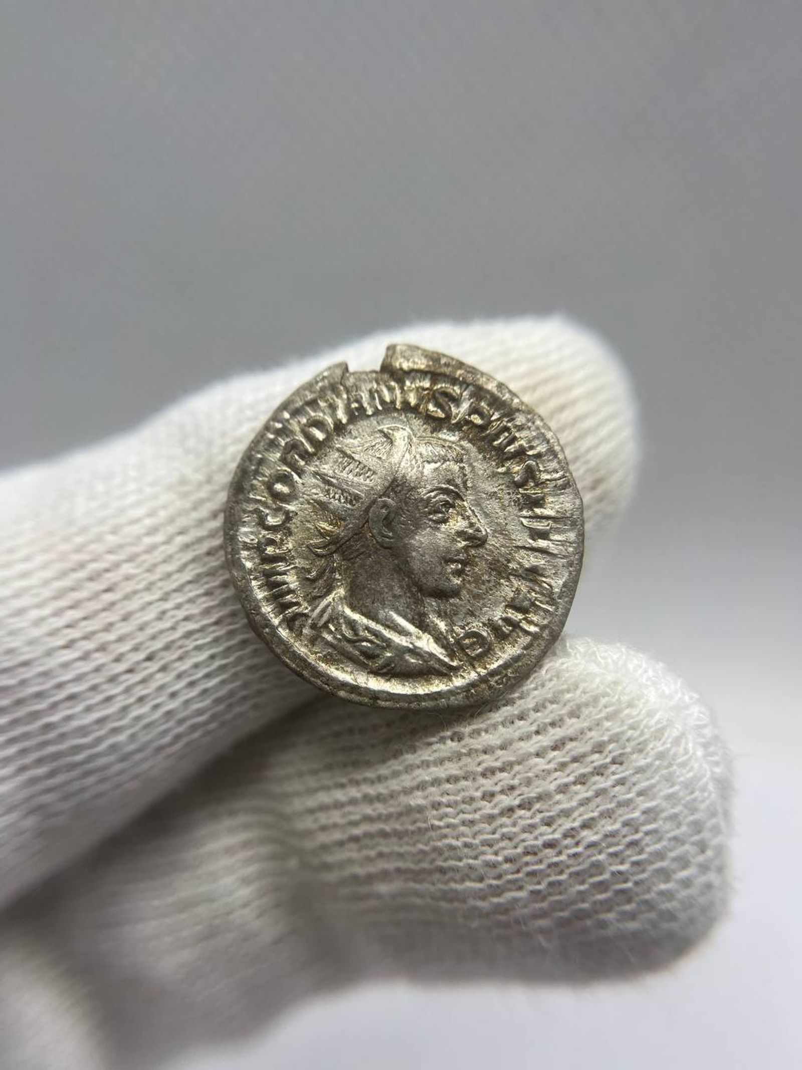 D/ IMP GORDIANVS PIVS FEL AVG. Busto di Gordiano III, radiato, drappeggiato, corazzato, a destra.