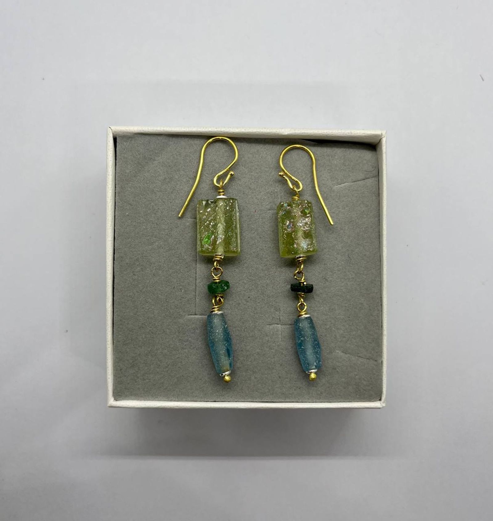 - Perle e frammenti in vetro in stile antico acquistati da un produttore specializzato in beads dal look storico.